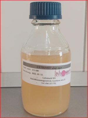 Felhasználásra kész steril táptalaj. A táptalaj 100, 250 vagy 500 ml-es adagokban, kupakkal és kiöntő gyűrűvel ellátott betétdíjas táptalajos üvegekbe kiszerelve, tizesével hullámkarton dobozva csomagolva kerül forgalomba. A táptalajhoz kiegészítő szükséges! A betétdíjas göngyöleget (táptalajos üvegek kupakkal és kiöntő gyűrűvel) visszavásároljuk. -